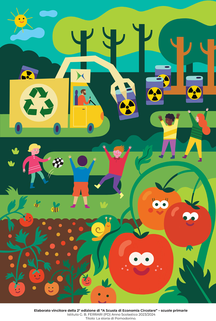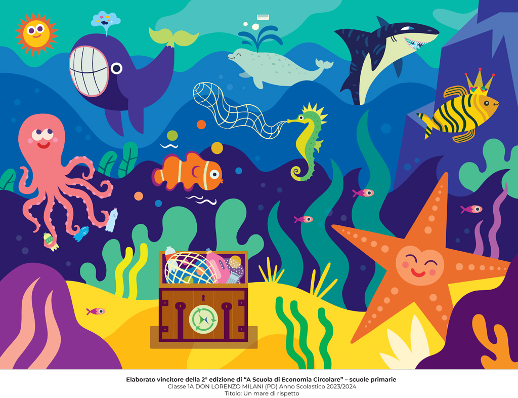 Nel corso dell’anno scolastico 2023/2024, il progetto ha raggiunto numeri significativi: 619 kit didattici distribuiti in 555 scuole, per un totale di oltre 1.100 studenti partecipanti. Grazie a un racconto illustrato e a una guida pensata per gli insegnanti, le classi hanno potuto approfondire i concetti fondamentali dell’economia circolare – dal riuso al riciclo, fino alla differenza tra modello lineare e circolare – trasformando quanto appreso in elaborati creativi per partecipare al concorso finale.