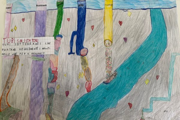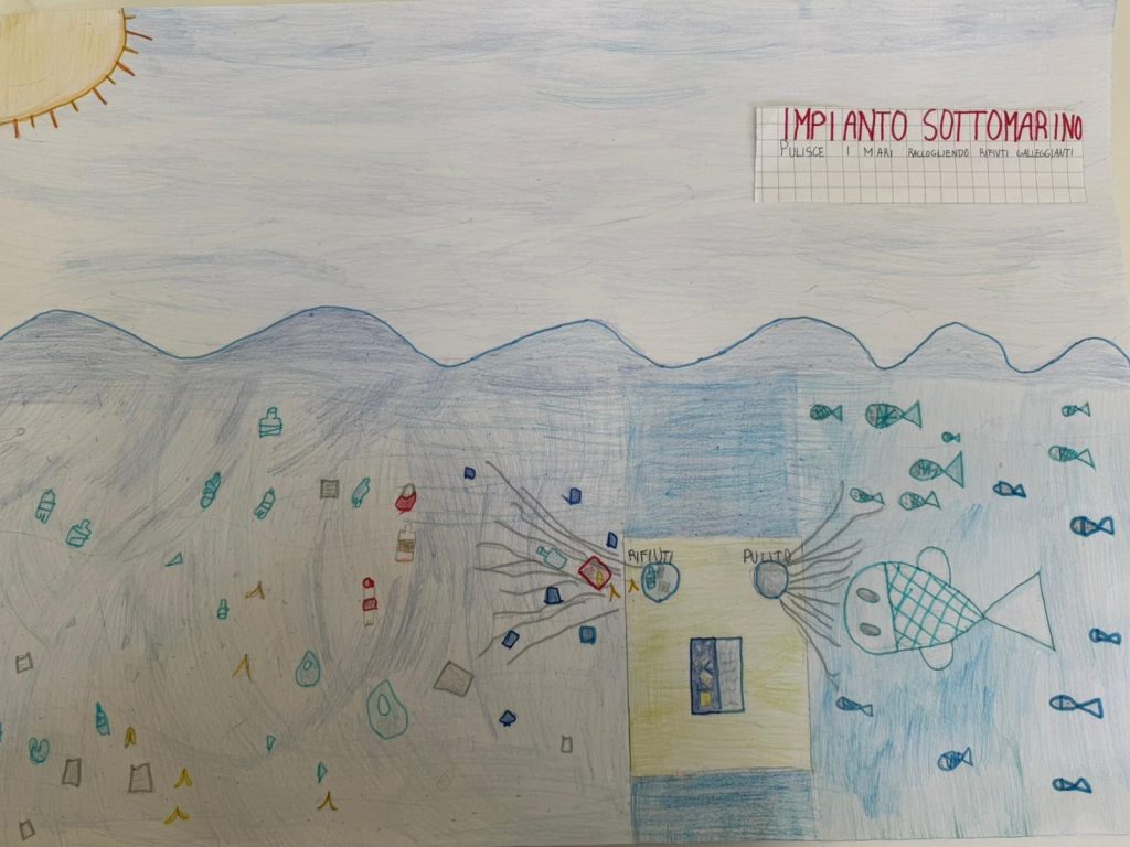Con matite e colori, gli alunni hanno immaginato il futuro del riciclo e delle tecnologie ambientali. Disegni visionari raccontano impianti di smaltimento avveniristici e processi innovativi, frutto di un lavoro collettivo che unisce fantasia e consapevolezza ecologica.