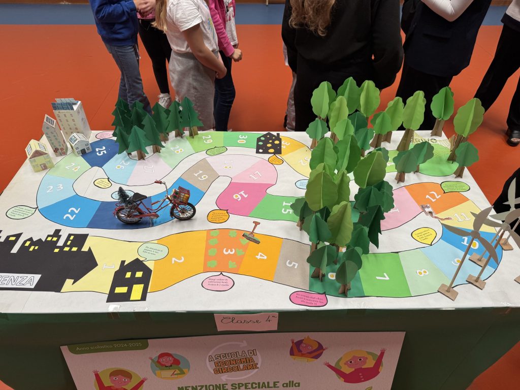 • Scuola Primaria Maria Montessori, Novate Milanese (MI). La classe 2 A guidata dal docente Letizia Melegari ha presentato il “Gioco dell’oca riciclona”. Un racconto in cui Martina, Aurora, Lorenzo e Matteo, 4 compagni di scuola ormai amici inseparabili uniti dalla passione per il riciclo, trovano un modo per sensibilizzare tutti gli alunni della loro scuola sui temi dell’economia circolare inventando dei giochi da fare tutti insieme tra cui proprio il “Gioco dell’oca riciclona” realizzato con materiali di scarto.